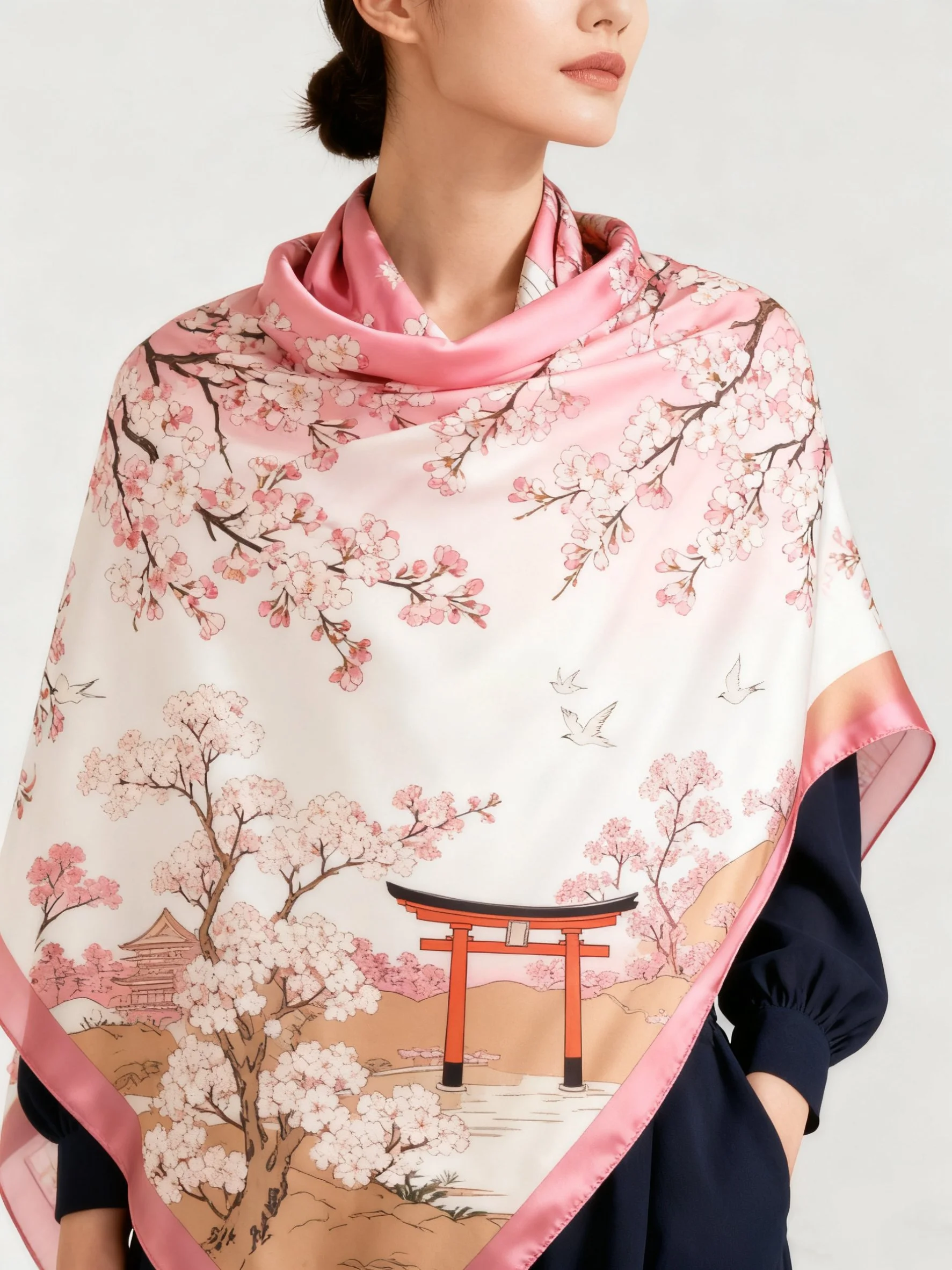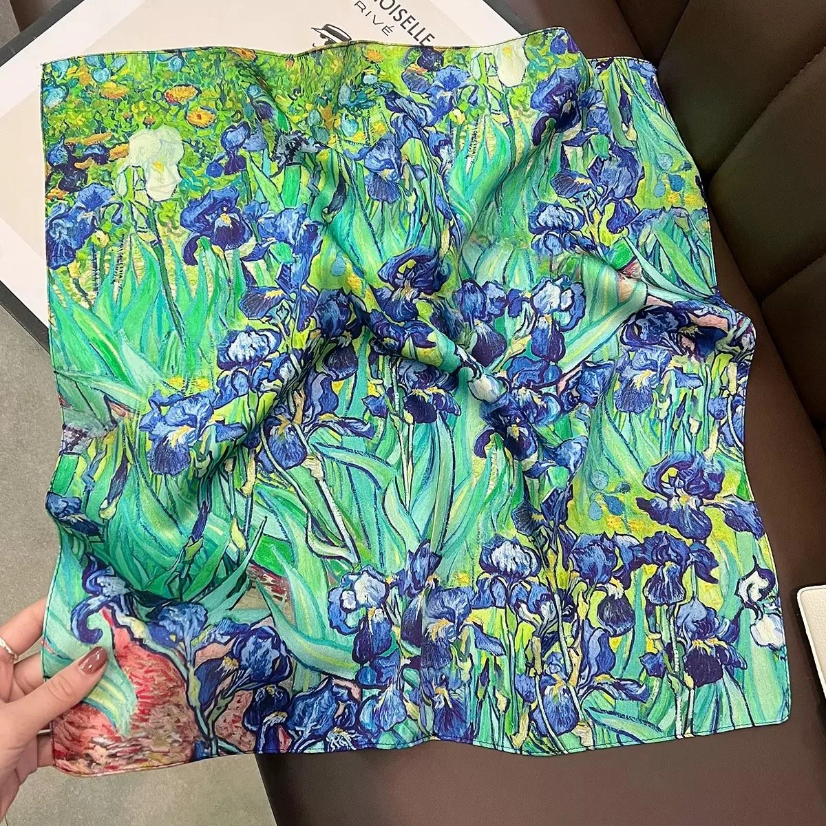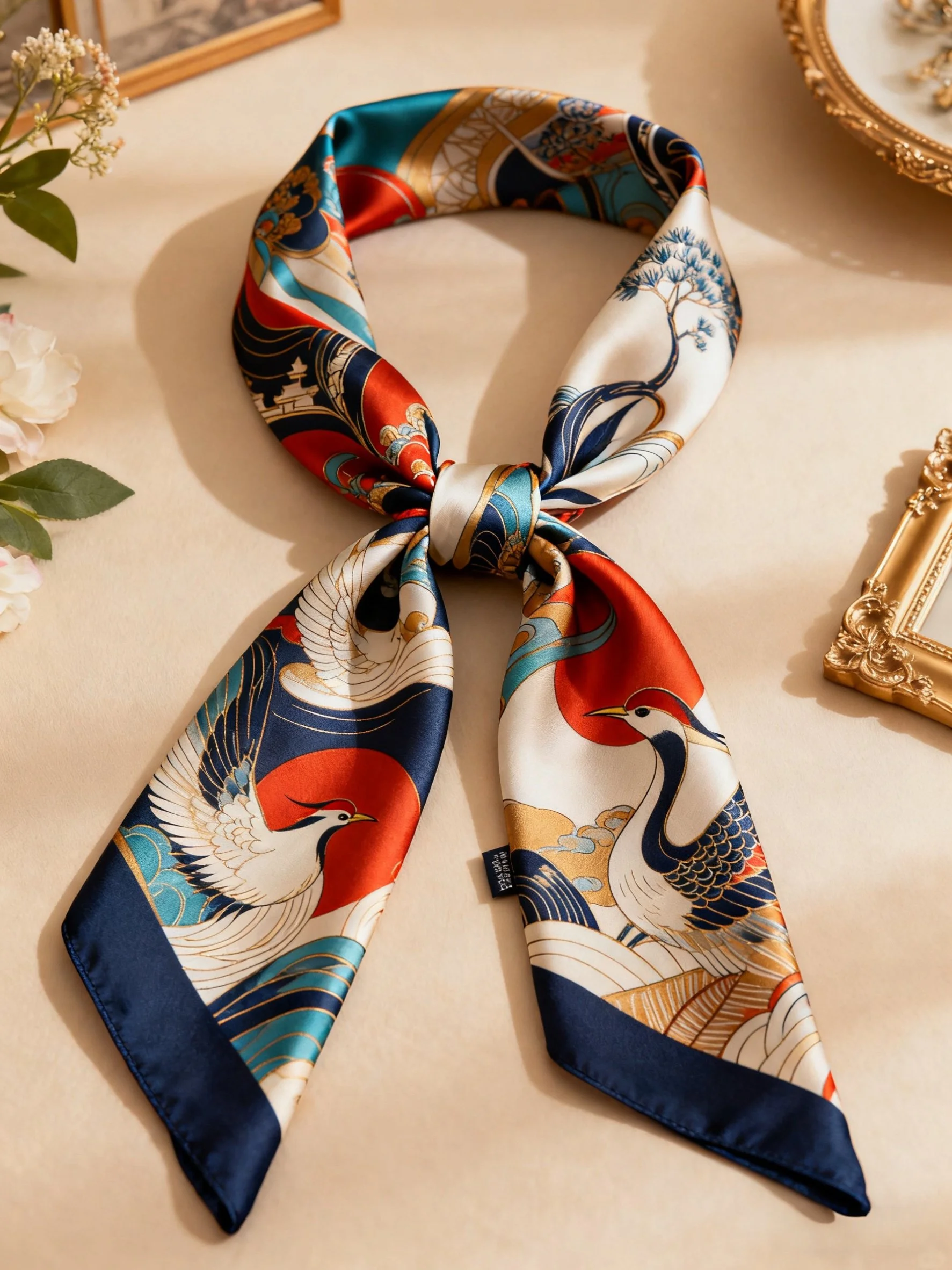From a small handkerchief to a full-size fashion scarf, the series highlights print clarity, drape, and material sheen. These textiles can function as fashion accessories, decorative accents, or collectible art objects.