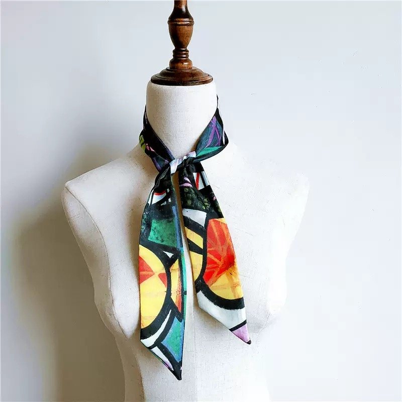 Scarves and handkerchiefs serve as fluid carriers of imagery, translating artwork, patterns, and cultural motifs into soft, wearable formats.