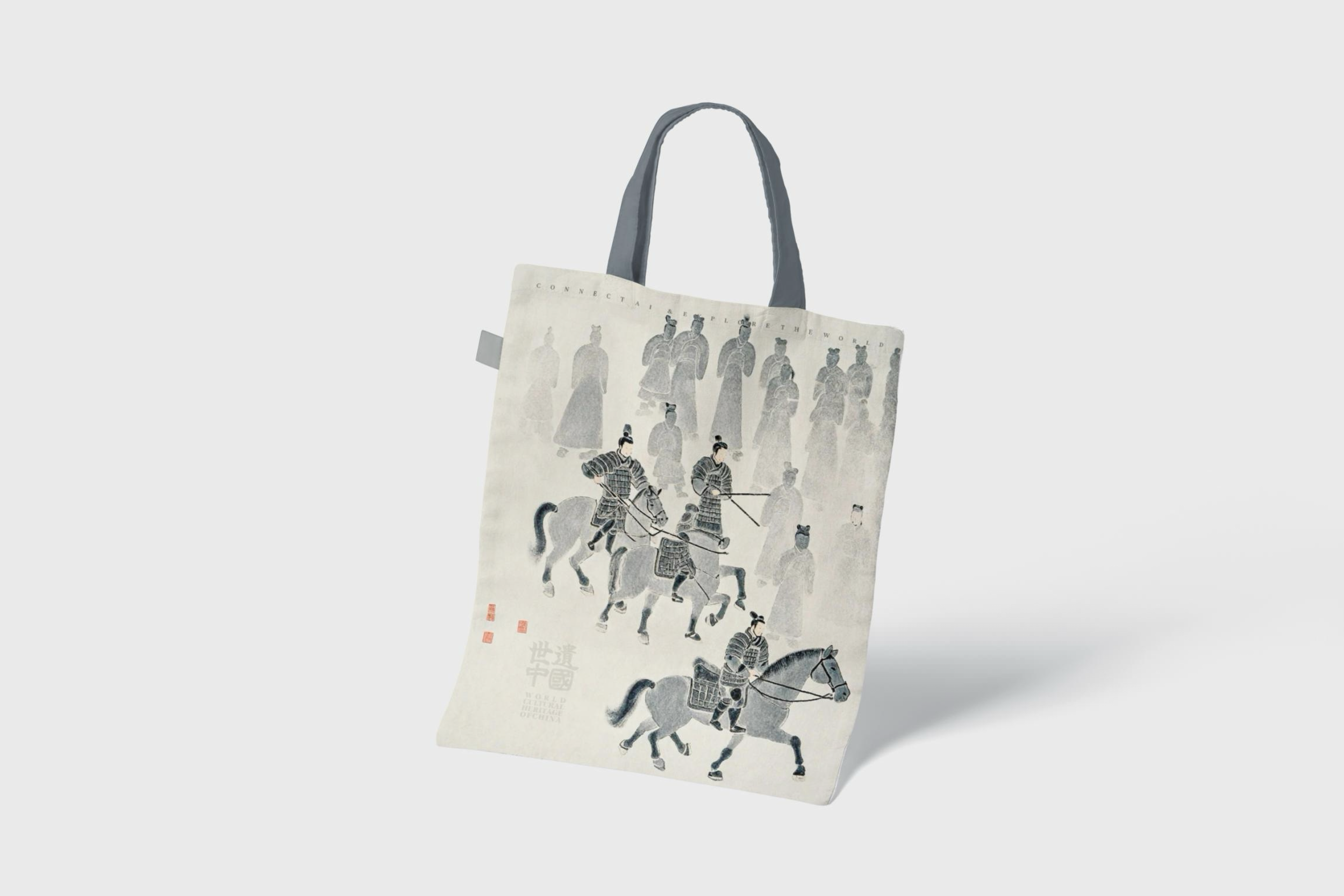A signature reversible tote designed for museum and cultural retail.
